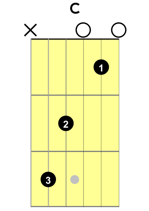 So with C/G we just have to add a G note to the chord. The most typical way to do this is to shift your third finger over to the low E string to play the G note and to use your fourth finger on the C note on the A string.