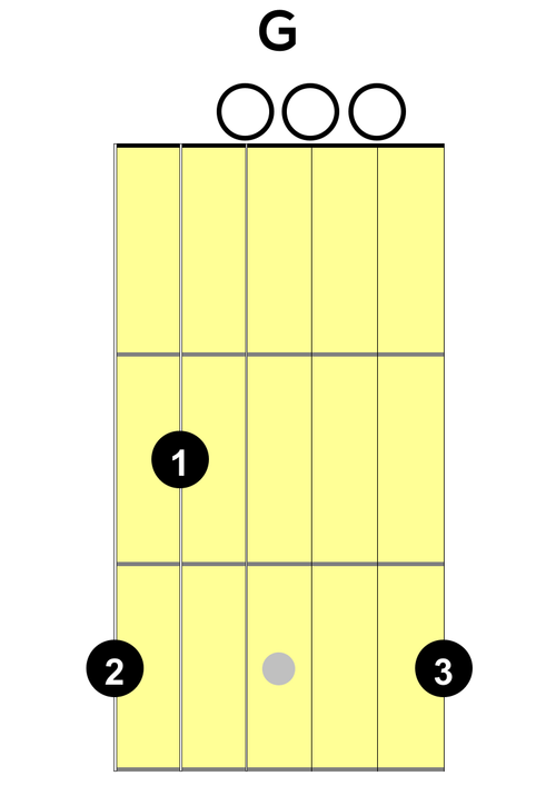 With the G/B, all this tells us is that we are playing a G major chord and that the lowest note of this chord is a B note. In the diagrams below I put a G major chord on the left and the G/B on the right. Notice how the only difference is that we are just omitting the note on the low E string.